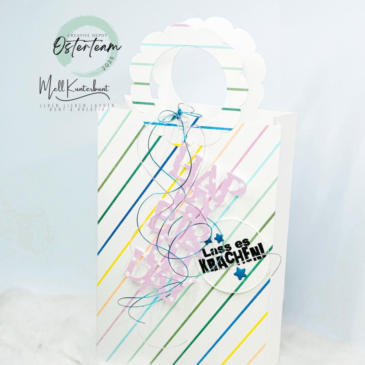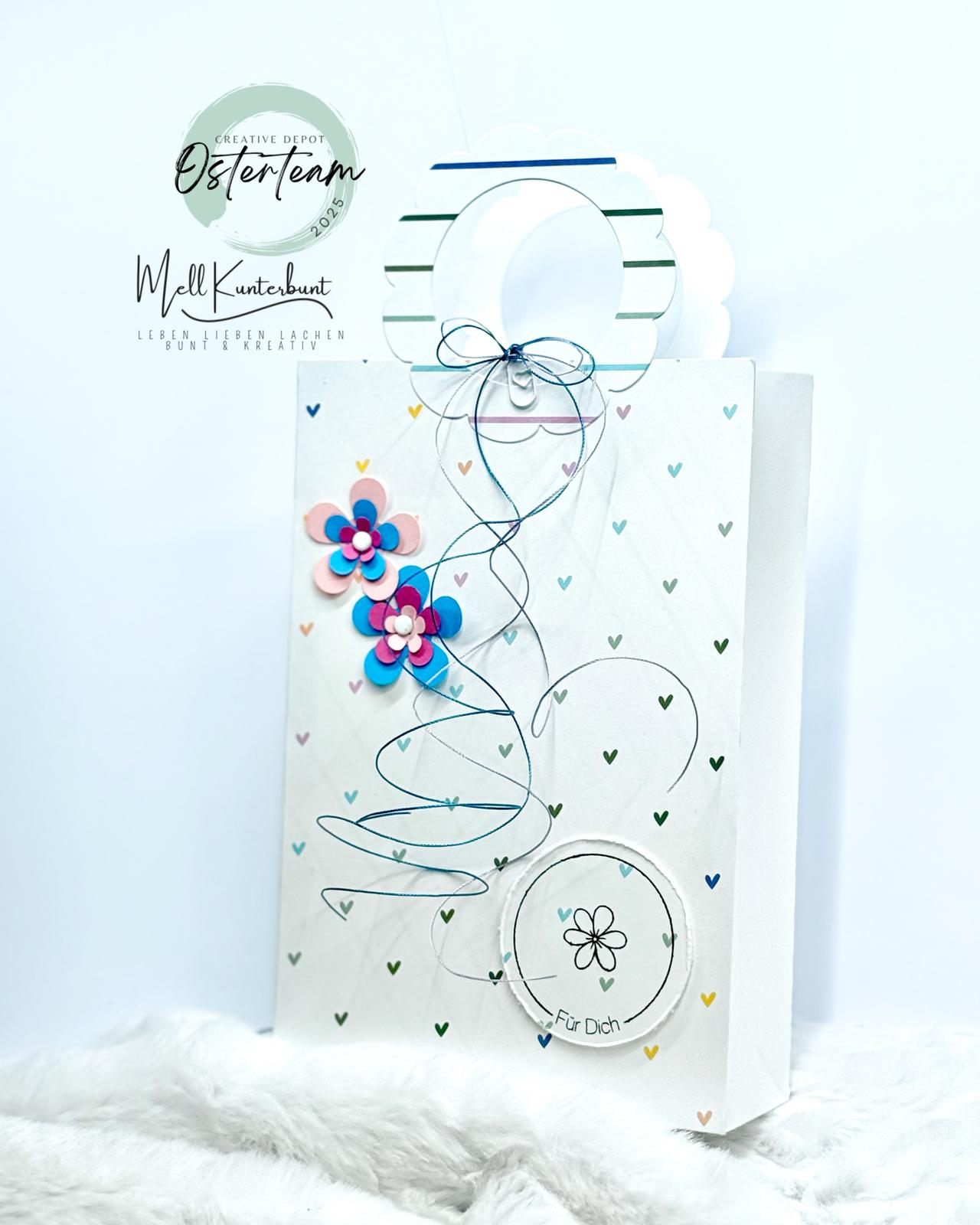 Avec cette poignée en forme de fleur, tu crées en un clin d'œil un magnifique emballage cadeau printanier. Place la poignée directement sur le sac et ajoute la fleur dans une deuxième couleur