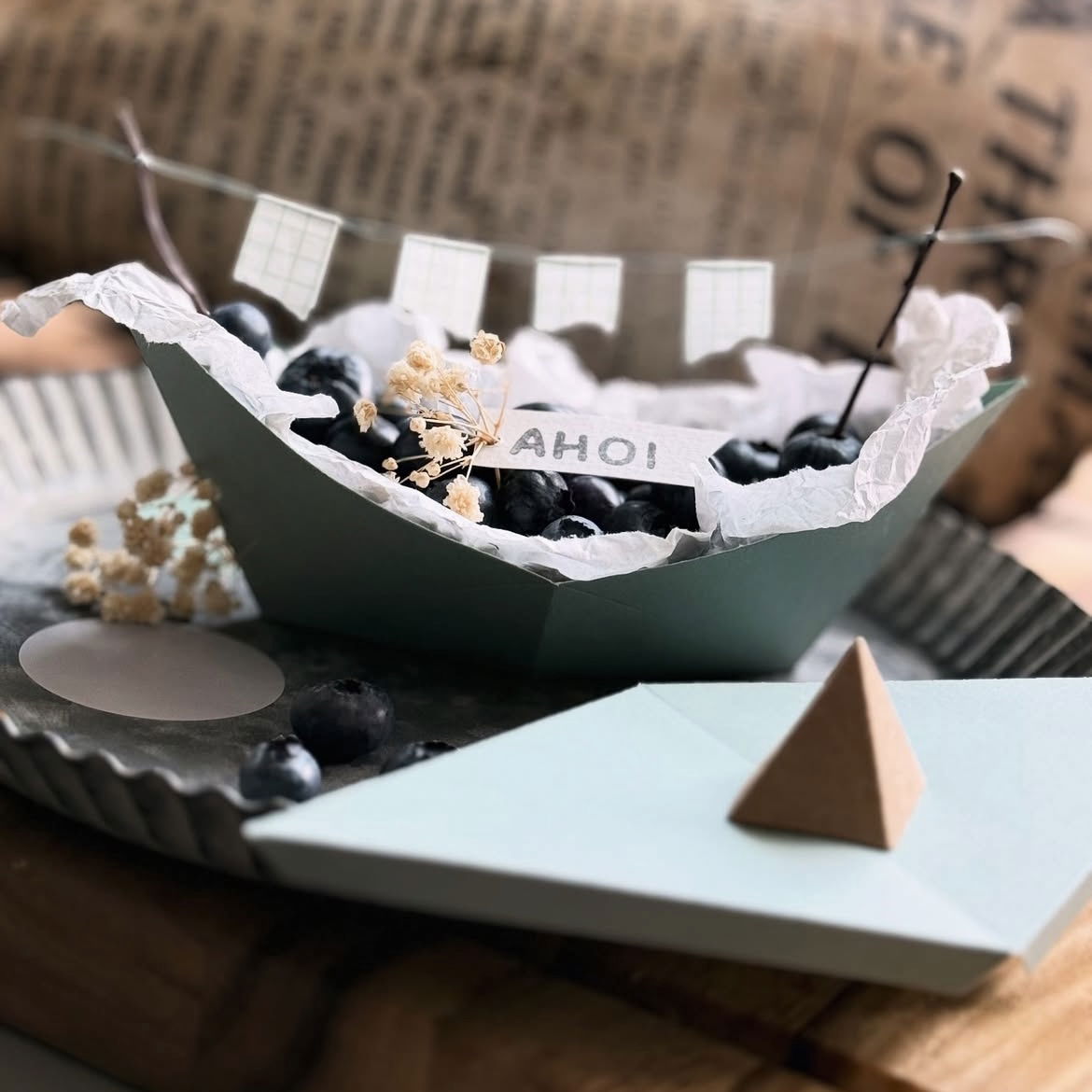 ⛵🎁🌞💙Un grand bateau en papier plein de possibilités! Cette boîte joliment conçue à l'aspect d'un bateau en papier est parfaite comme emballage pour les petits cadeaux, les cadeaux à ramener ou comme point fort de la décoration lors de ta prochaine fête d'été.