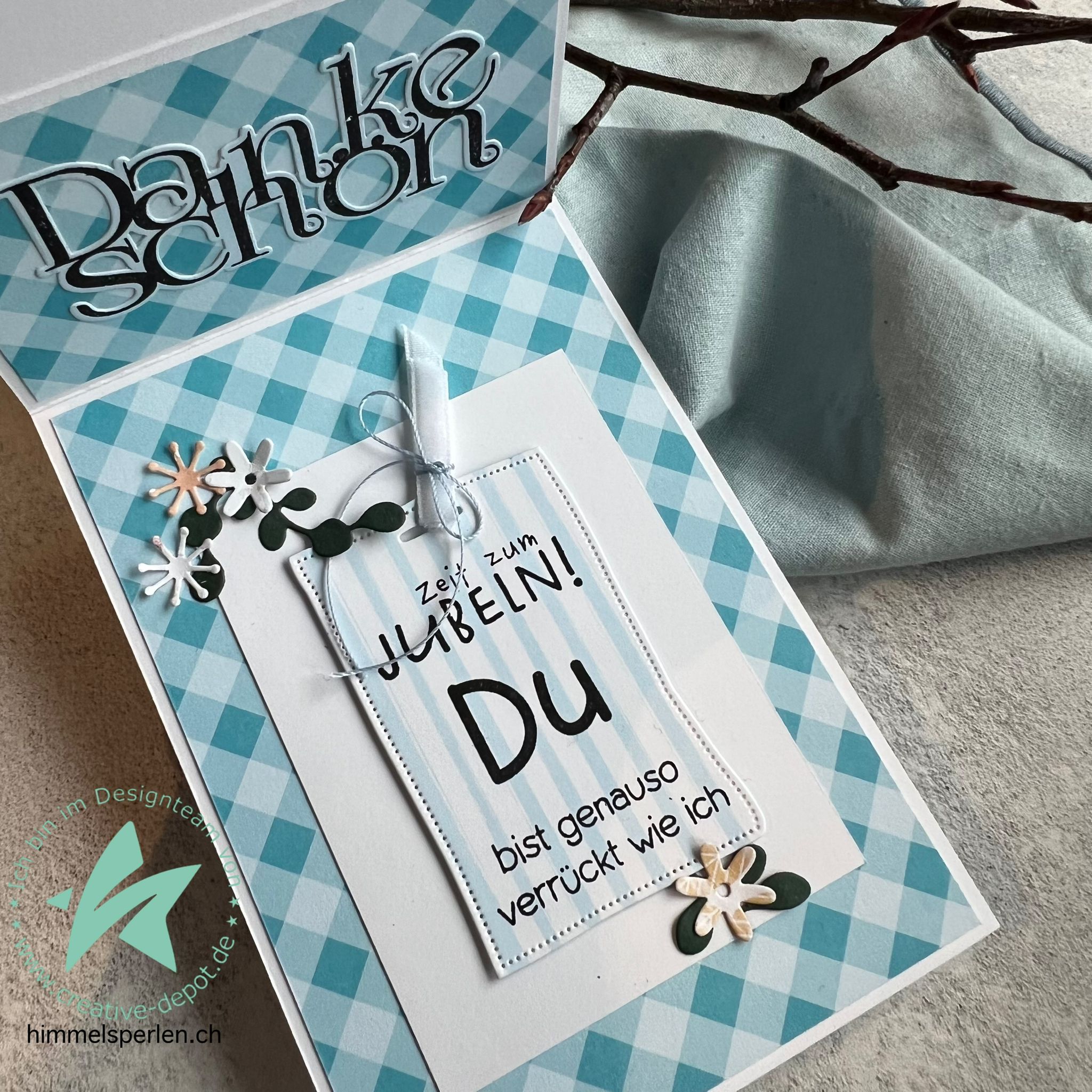 Papier à dessin - Basic - Sommertürkis - Häuser + Zweige beidseitig bedruckt