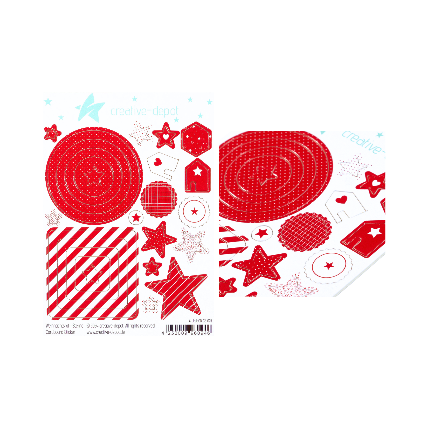 Cardboard Sticker - Weihnachtsrot - Sterne